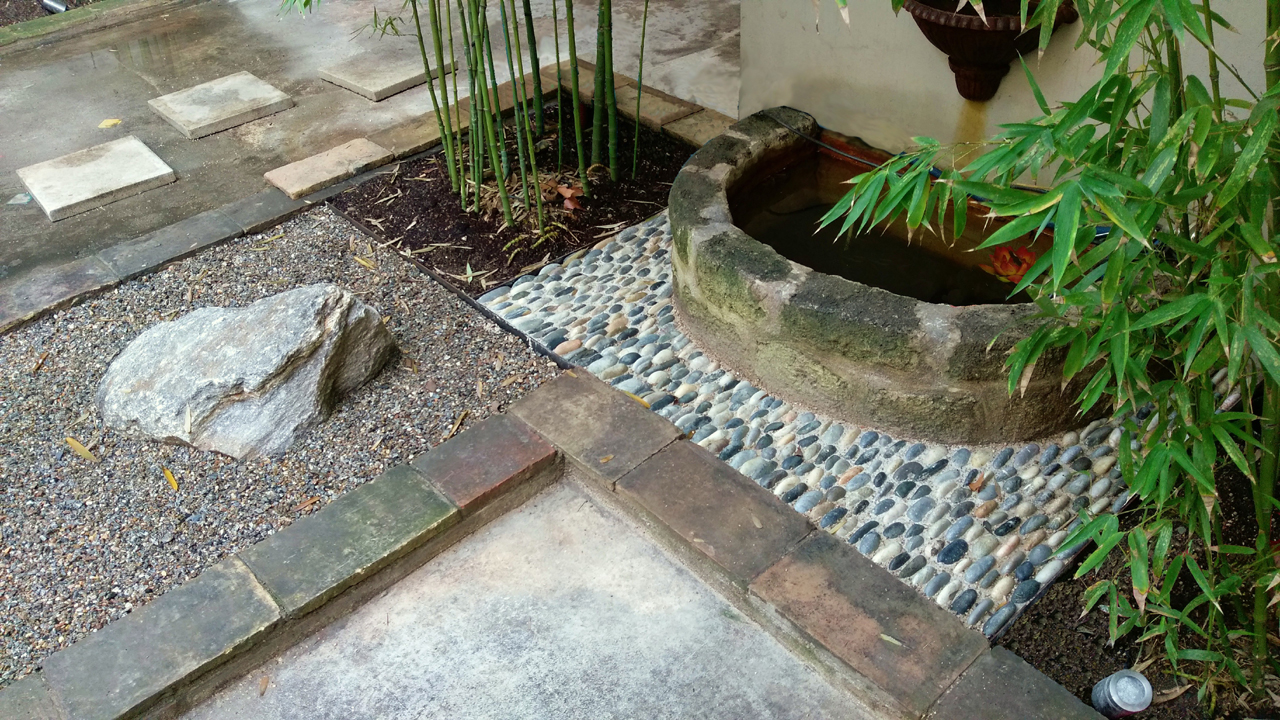 Eclaircissement d'un massif de bambous, réparation et colmatage du muret anti-rhizome