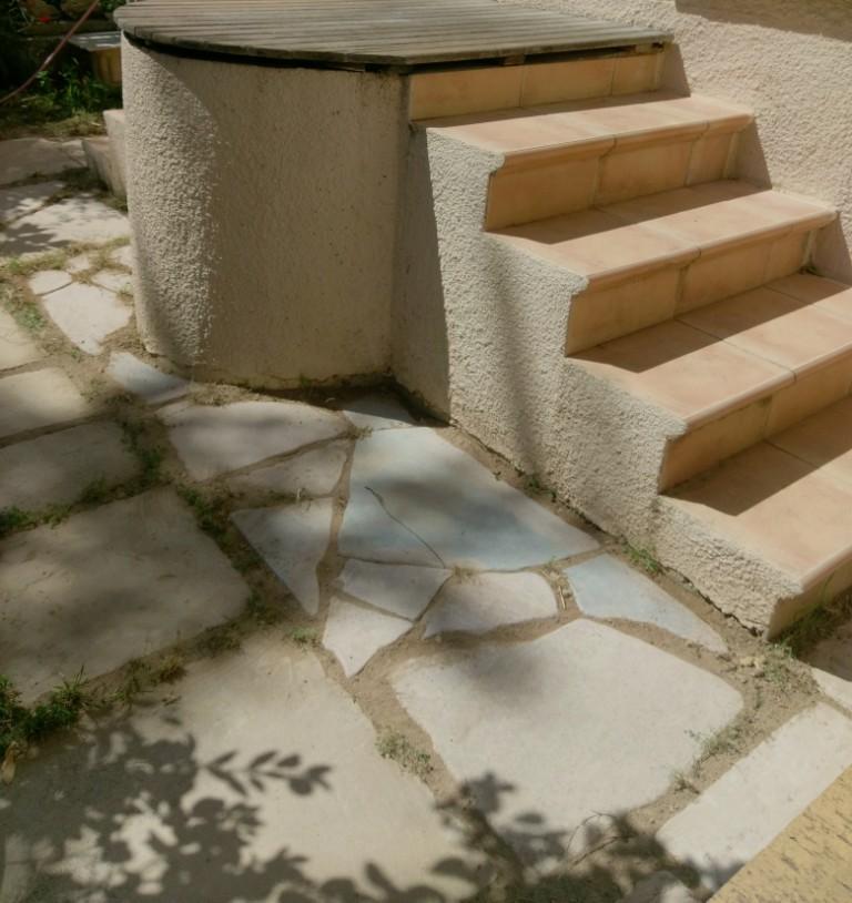 Extensions rectiligne et en opus incertum d'un dallage à joints végétalisés